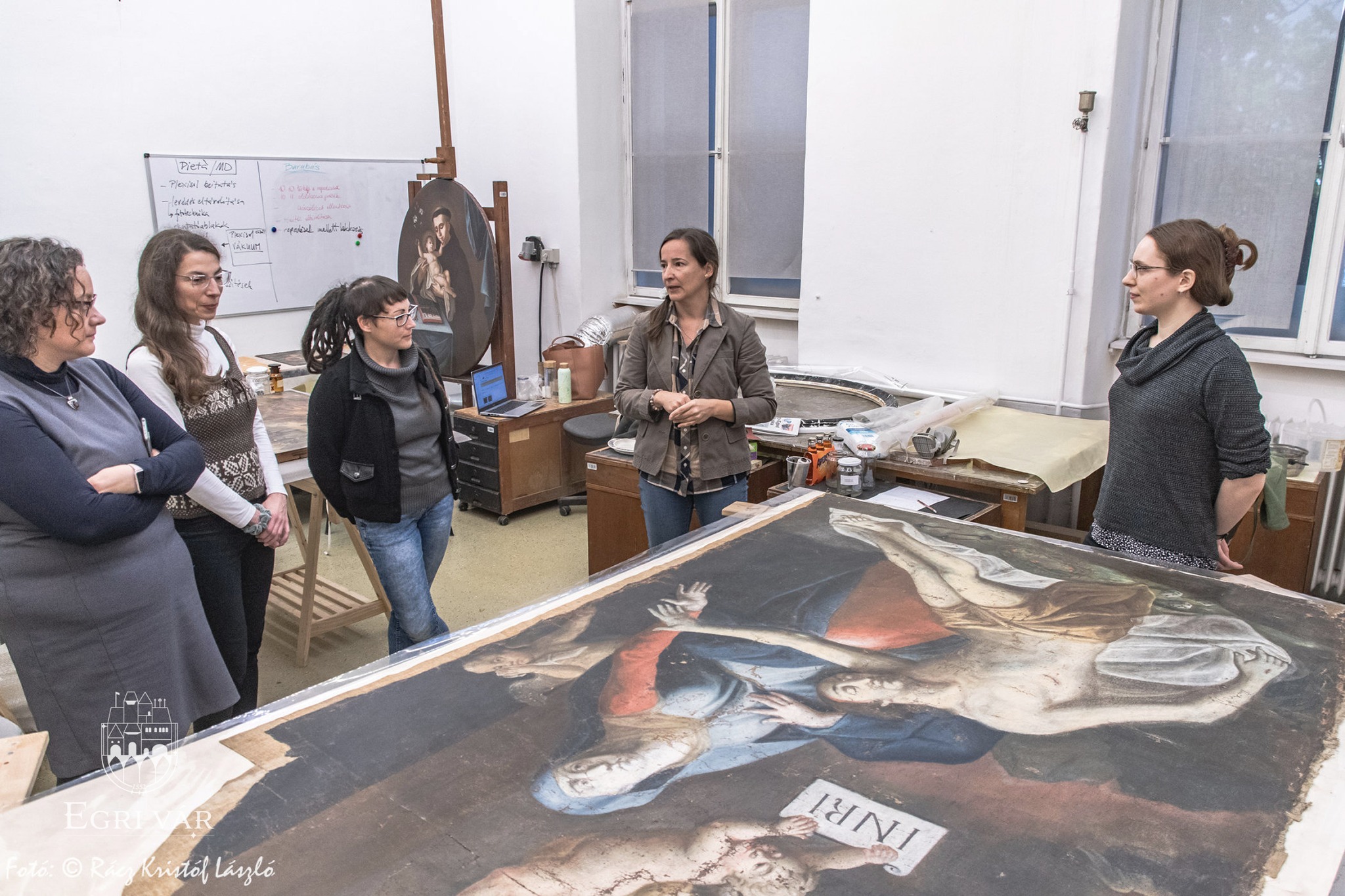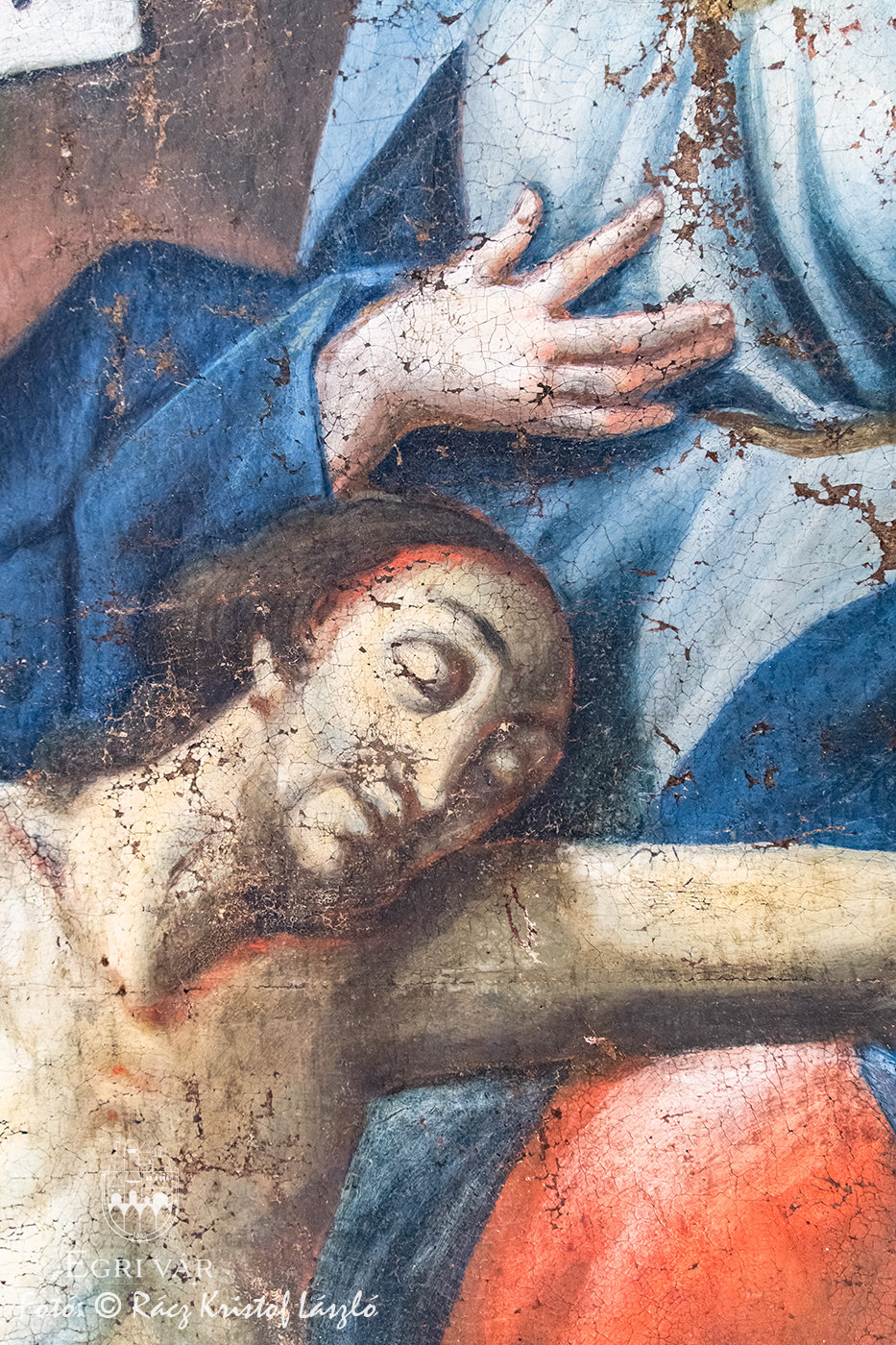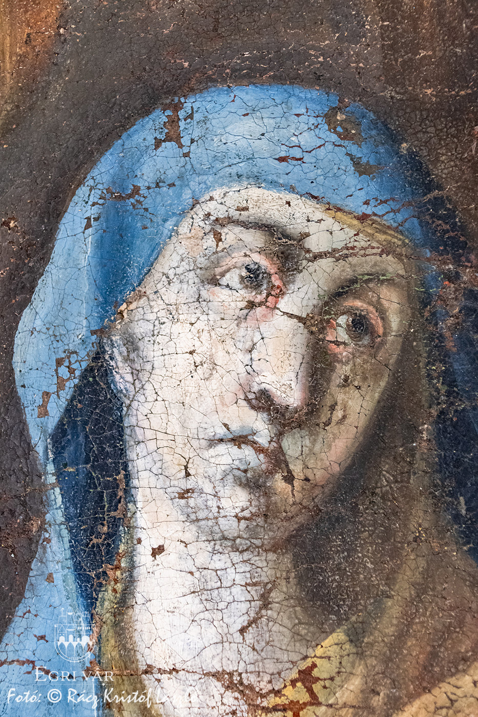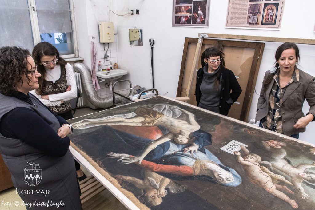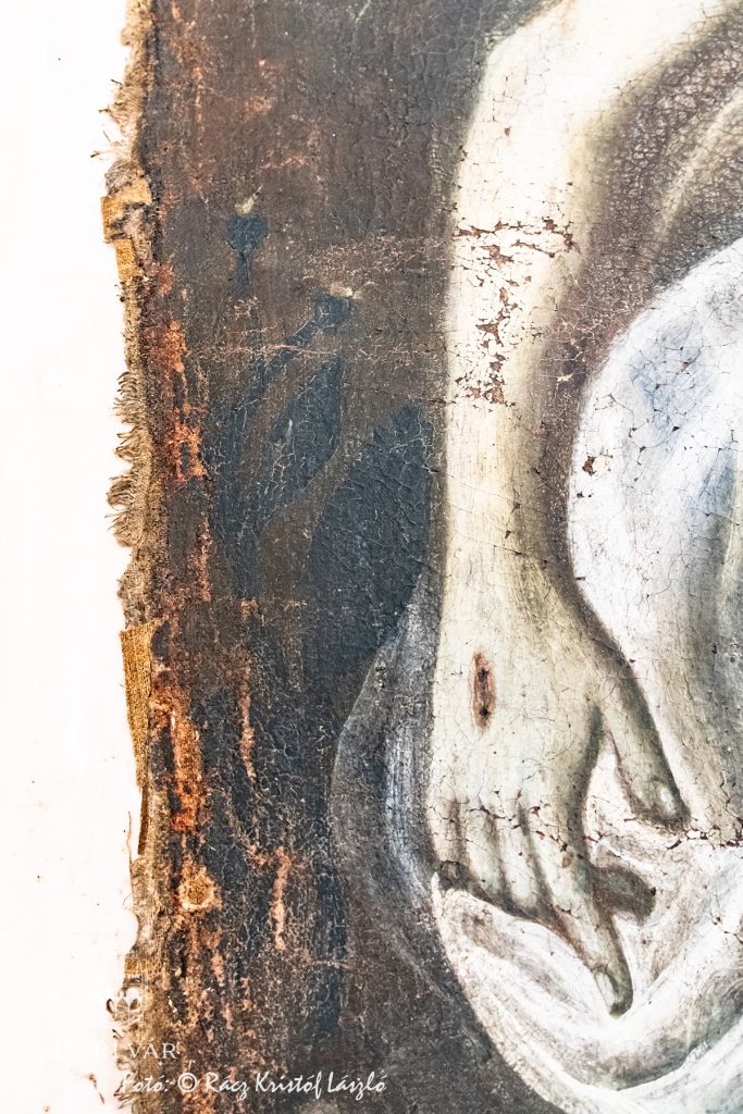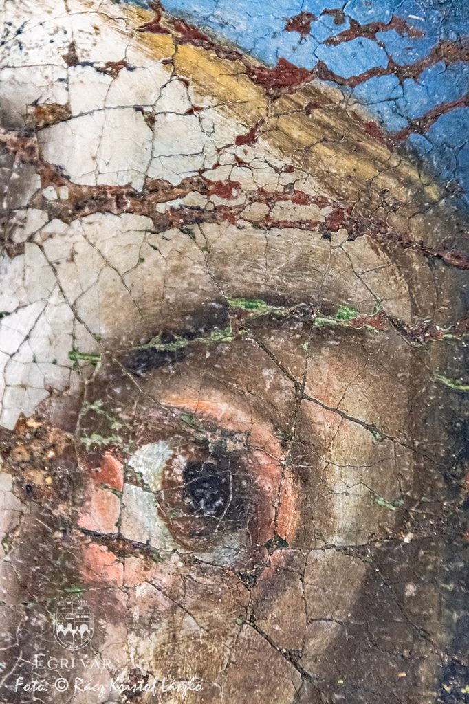 Nemesné Dr. Kis Tímea művészettörténész és Havasi Norbert, a Kaptárkő Egyesület elnöke, a Nagy-Eged hegyi Szent Kereszt Kápolna kutatócsoport lelkes tagjai 2021-ben, a romtemplom építéstörténetének kutatása közben rábukkantak egy, az épülethez köthető, 1780-ban kelt forrásra. Az egyházlátogatási jegyzőkönyvből (canonica visitatio) kiderül, hogy a hegyen állott kápolna felszerelési- és berendezési tárgyait az 1776-tól épült Fájdalmas Szűz (hatvani) temetőkápolnába szállították át. Az inventáriumban szerepel az Eged-hegyi kápolna főoltárképe is, amelyet a hatvani temetőkápolnában a kutatók egy mellékhelyiségben fedeztek fel. A Mater Dolorosa, azaz Fájdalmas Szüzet ábrázoló 18. század közepi olajfestmény restaurálását a Magyar Képzőművészeti Egyetem végzős hallgatói, Szőke Viola Borbála és Burinskaite Paulina végzik Heitler András tanszék- és témavezető, egyetemi docens irányításával. A jelenlegi festmény alatt egy másik témájú kép is rejtőzik, melynek kompozíciója egyelőre nem ismert, de a közeljövőben röntgensugaras vizsgálat fogja feltárni azt. A most látható olajfestményen szignó is van: Johan Petrus Schmid(t) pinxit 1778, ami a mester nevére és arra utal, hogy a festmény 1778-ben készült a hatvani temetőkápolnához, s hogy az eredeti Negy-Eged hegyi remetekápolna szintén barokk főoltárképe lett átfestve. A felső kép további érdekessége, hogy Krisztus öt szent sebén egy-egy lyukpár látható, amelyeket valószínűleg valamilyen nemesfémmel díszítettek.
